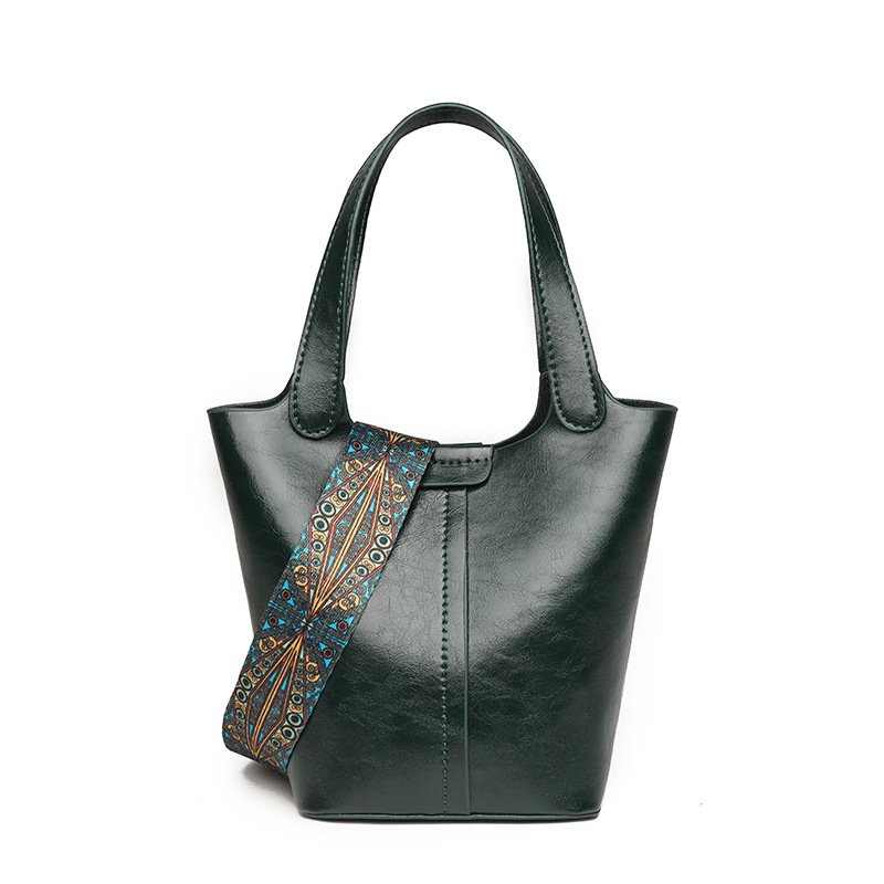 Top layer cowhide rhombic embroidery thread shoulder pillow bag