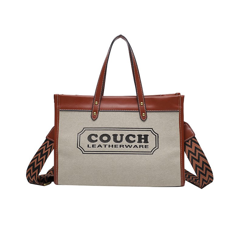 Women's Contrasting Color Stitching Letter Single Shoulder Tote Bag